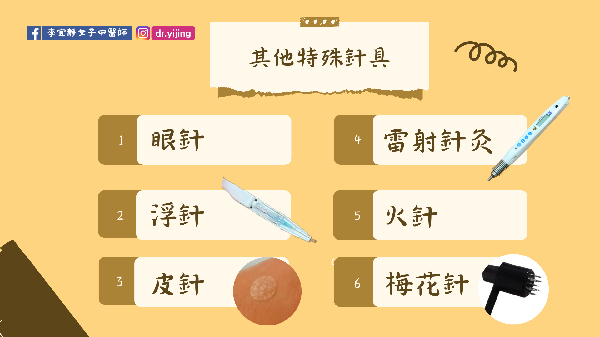 當然還有李醫師沒有提到的中醫針具,但就真的比較少見,大部分的中醫師也很少使用。大家在中醫就診時可以留意看看中醫診所有提供的不同針灸治療唷。