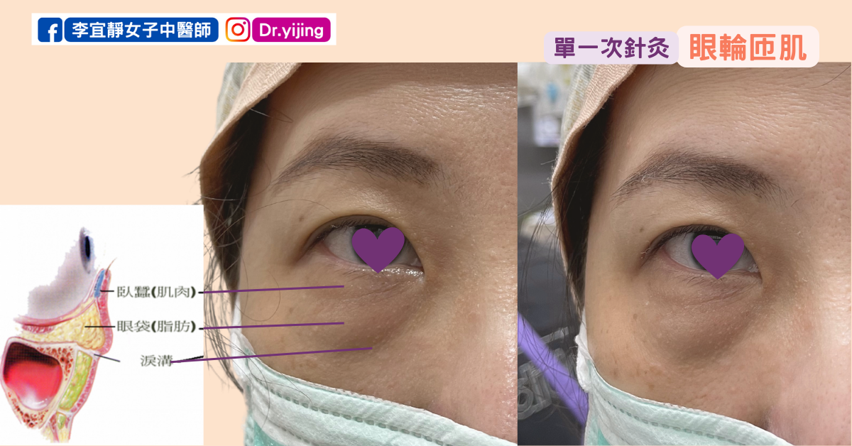 圖中是單一次的美顏針灸眼輪匝肌所呈現的效果,沒有很誇大。